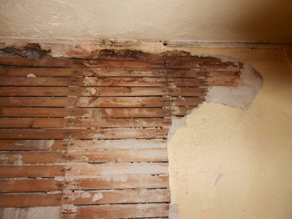 And here is my living room nightmare..That the carpenters found once the paneling was removed from the wall...